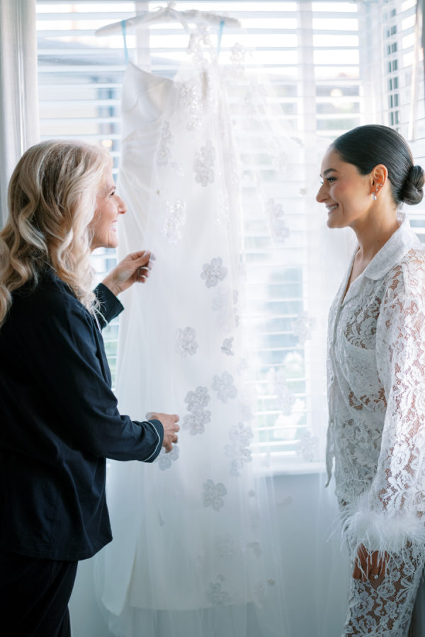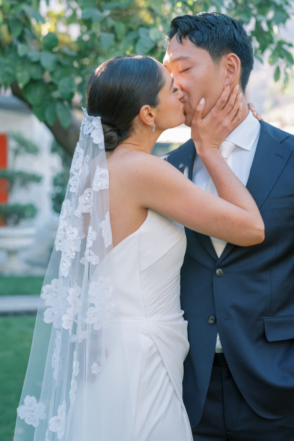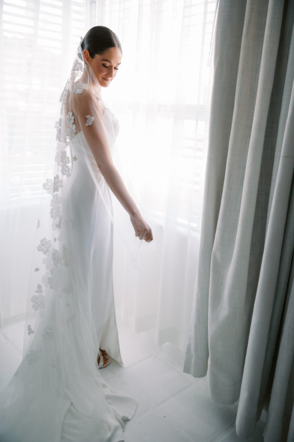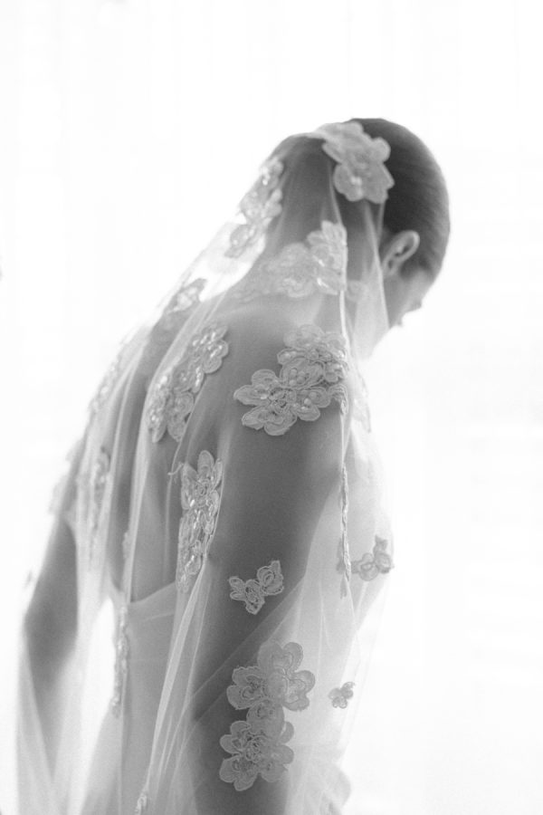 The bride’s veil was custom-made with appliques from her mother’s lace wedding dress