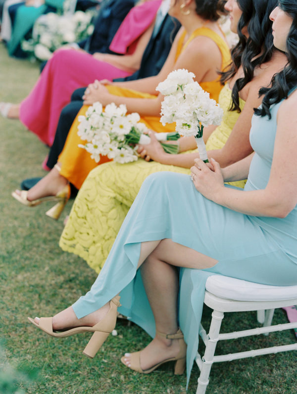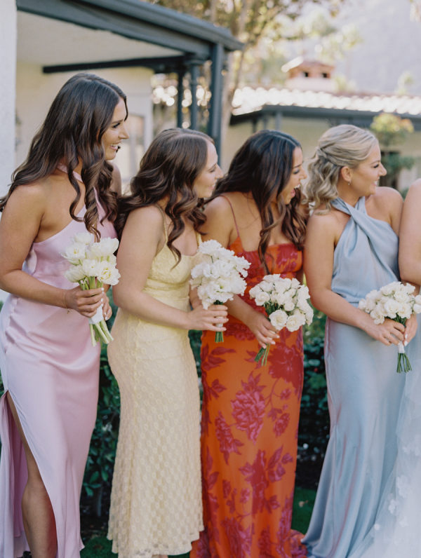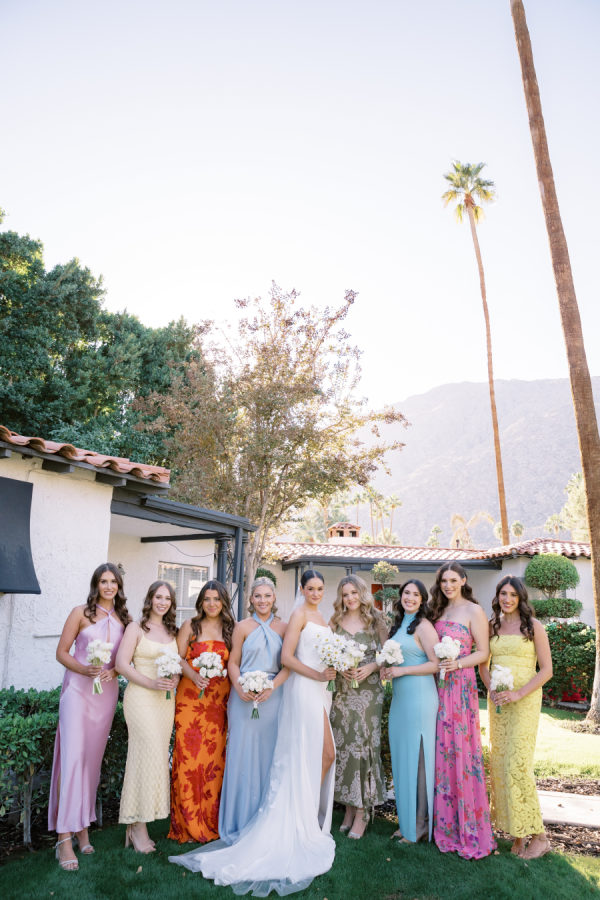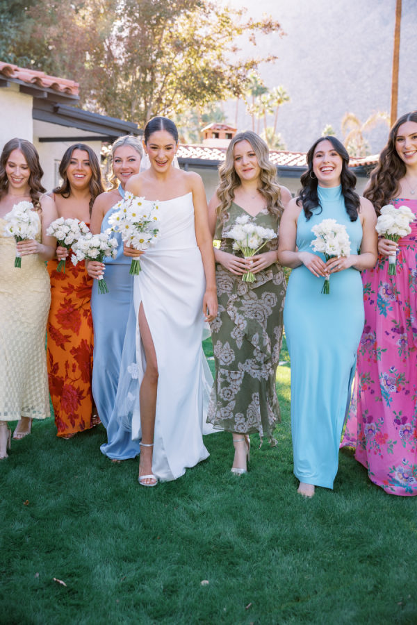 Bride let her friends choose the dresses for them with a focus on the Palm Springs style of colorful designs.