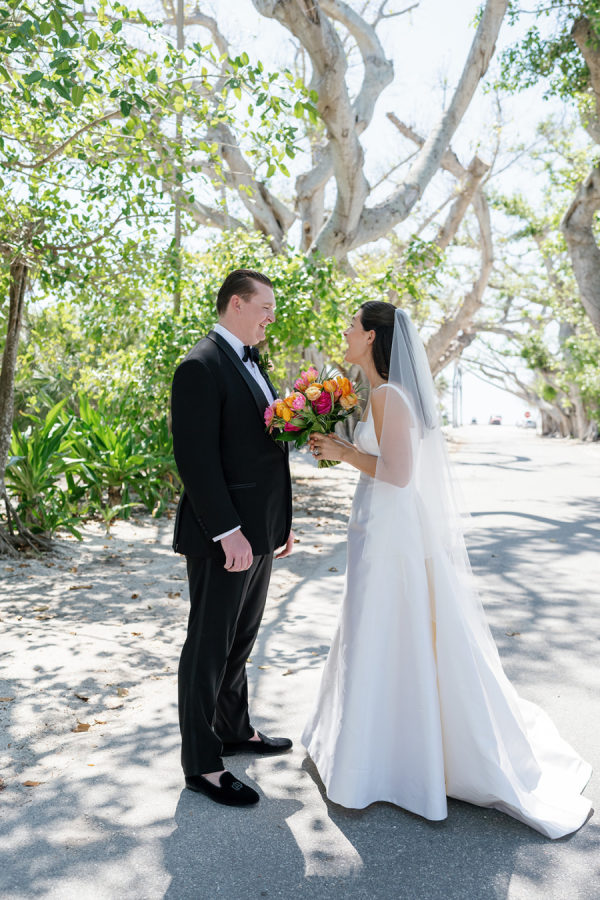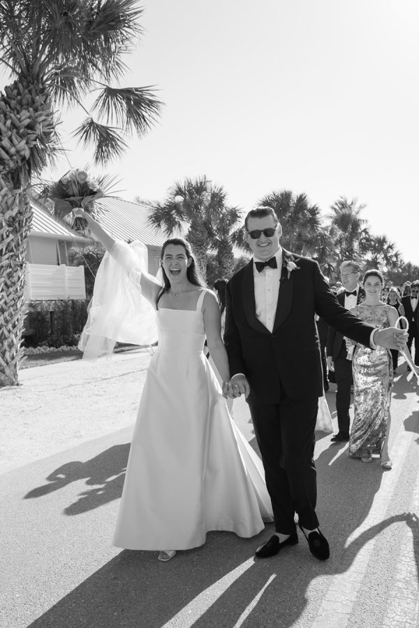 Food was one of the elements Andrew was most excited about, and he and Sydney worked closely with the chef at The Gasparilla Inn to create a menu inspired by their favorite restaurants around the world. The chicken entrée paid homage to their go-to dish at Frenchette in Tribeca, complete with the restaurant’s signature “chicken bread”—a crisp baguette soaked in savory jus and served beneath the chicken. For passed hors d’oeuvres, hush puppies offered a nod to Andrew’s Southern roots. Their request to the chef was simple: serve exceptional food, and plenty of it. The culinary team delivered beyond expectations, crafting a menu that was both creative and meaningful. Guests are still reminiscing about how unforgettable the meal was.