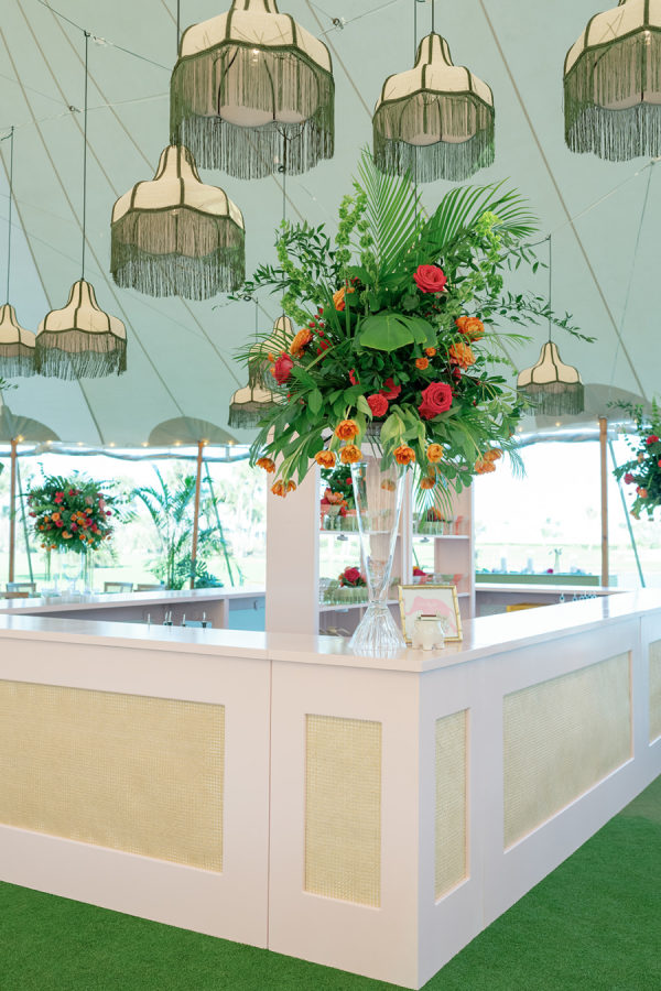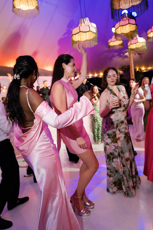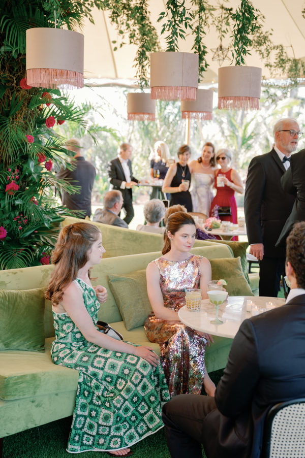 Julia selected a sequin gown from Michelle Farmer in Southampton, its vibrant tones perfectly complementing the tropical florals chosen for the day. Olivia, without any coordination, found a pink Self-Portrait gown adorned with crystal embellishments. Together, the dresses struck a natural balance (individual, but harmonious) and felt like true extensions of their personalities. “I’d love to claim it was all carefully planned, but in truth, it came together naturally and beautifully—just the way I envisioned,” she said.[/field]
