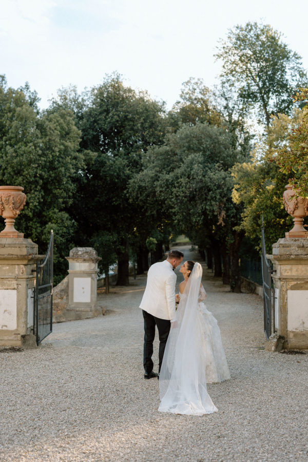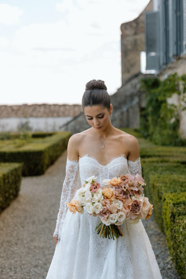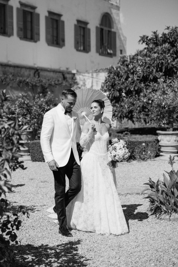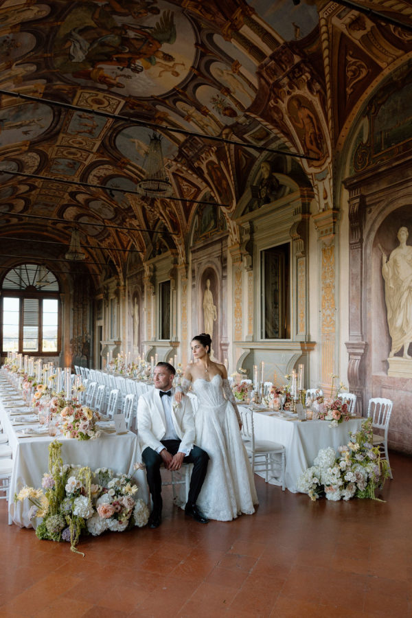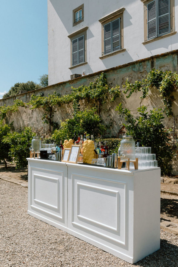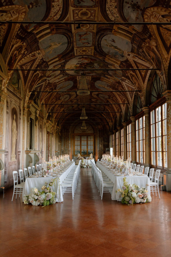 Floral journey: A continuous display of blossoms—spanning the ceremony, the villa entry, and the gallery—was artfully woven by Gabrielle and Laura of Stiatto Fiori, whose coordination ensured a cohesive and balanced aesthetic throughout the venue. Team effort: The day’s success owed much to TheKnotInItaly team, with Rossana and Tiziano consistently present and proactive in meeting Gabrielle’s requests, contributing to a seamless guest experience. Visual impact: The overarching floral narrative emphasized refinement and unity, with arrangements designed to complement Villa Corsini’s architecture while guiding guests through key venue moments.