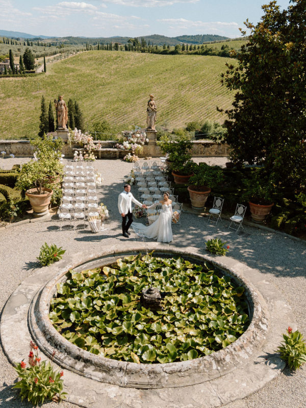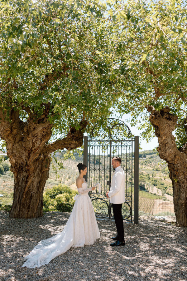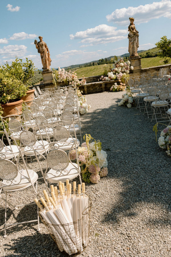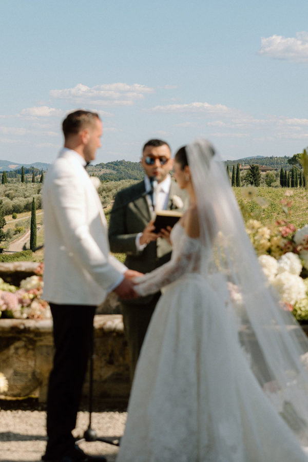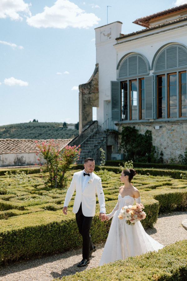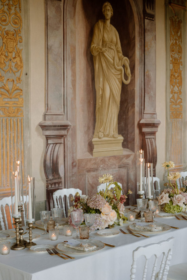 Floral journey: A continuous display of blossoms—spanning the ceremony, the villa entry, and the gallery—was artfully woven by Gabrielle and Laura of Stiatto Fiori, whose coordination ensured a cohesive and balanced aesthetic throughout the venue. Team effort: The day’s success owed much to TheKnotInItaly team, with Rossana and Tiziano consistently present and proactive in meeting Gabrielle’s requests, contributing to a seamless guest experience. Visual impact: The overarching floral narrative emphasized refinement and unity, with arrangements designed to complement Villa Corsini’s architecture while guiding guests through key venue moments.