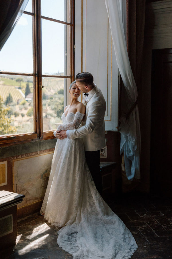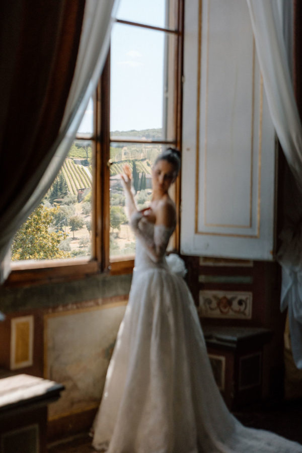 from the bride ” My wedding dress journey started with a simple idea: a classic, elegant satin gown. I spent hours trying on different satin dresses, but none of them truly felt right or like “the one.” Frustrated but still hopeful, I decided to explore other options and looked into the designs of Pnina Tornai. When I finally slipped into the gown she created, I knew instantly it was the one. The beautiful details of the delicate Chantilly lace, along with the gown’s unique Basque waist, made it feel both timeless and perfectly suited to me. It also gave me a Tuscan Italian feel, and I knew it was the one! “