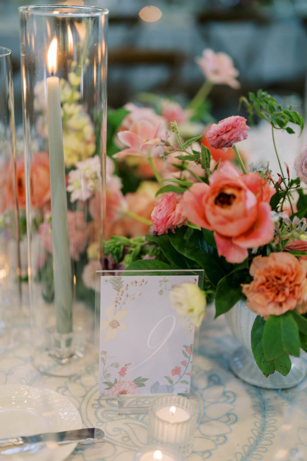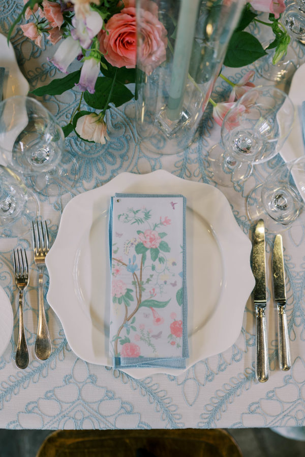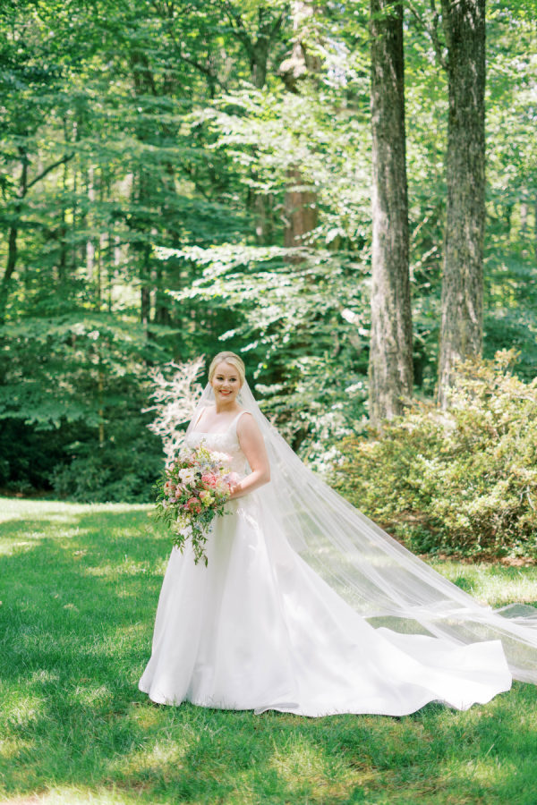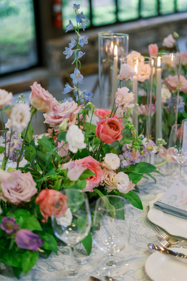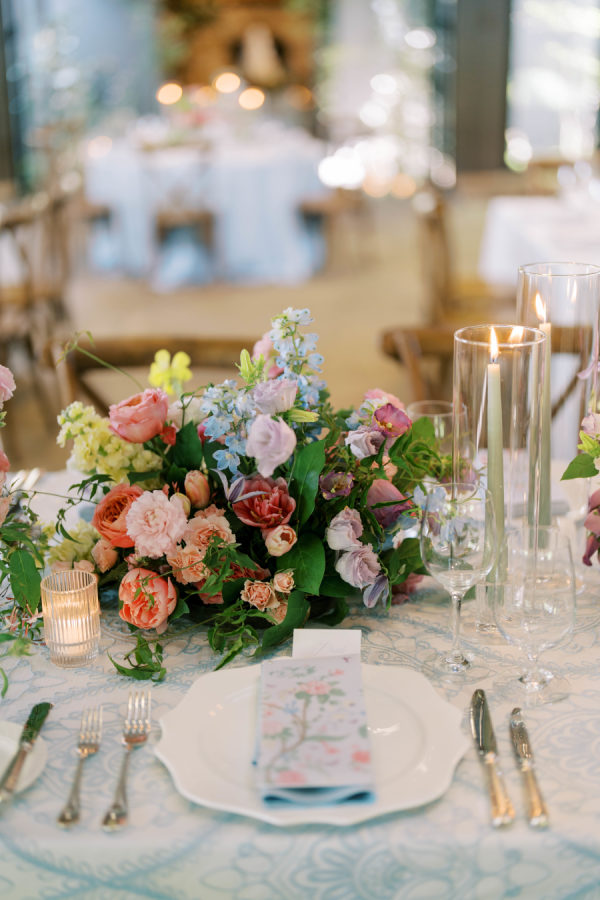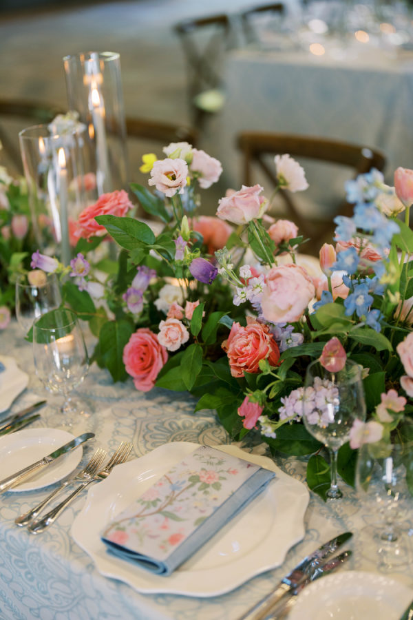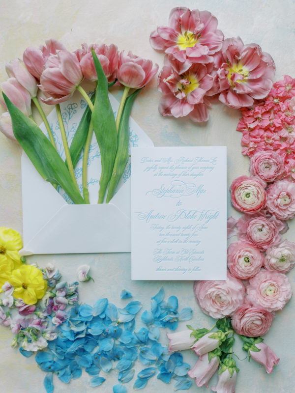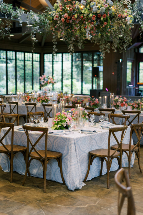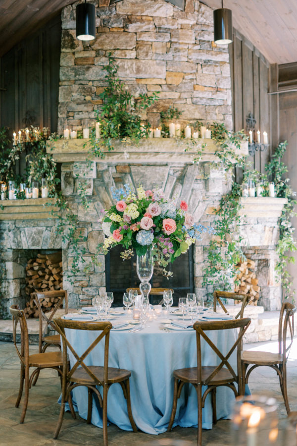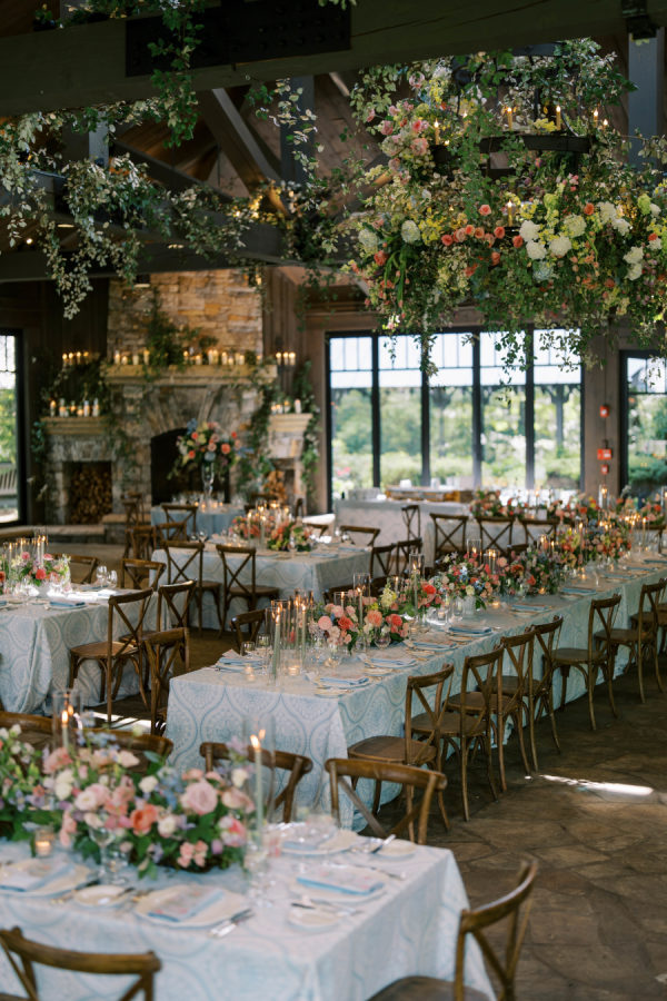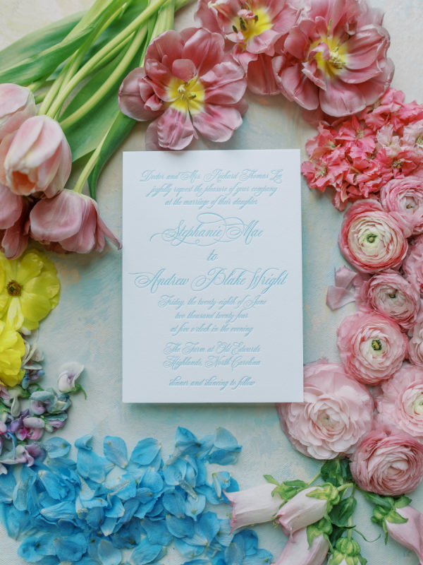 The vibe for this wedding was a genteel Southern wedding, weaving in elements of the garden at The Farm at Old Edwards with the beauty of summertime in the Highlands. Our focus was on bringing the outdoors in with the blues and pinks so often seen at mountain sunsets and offering, as all Southerners do, refined and gracious hospitality.