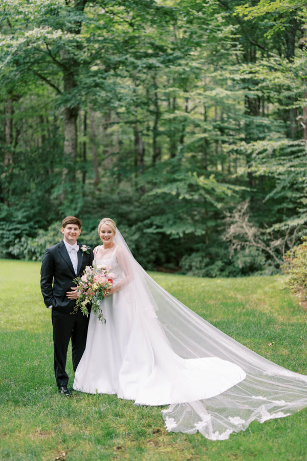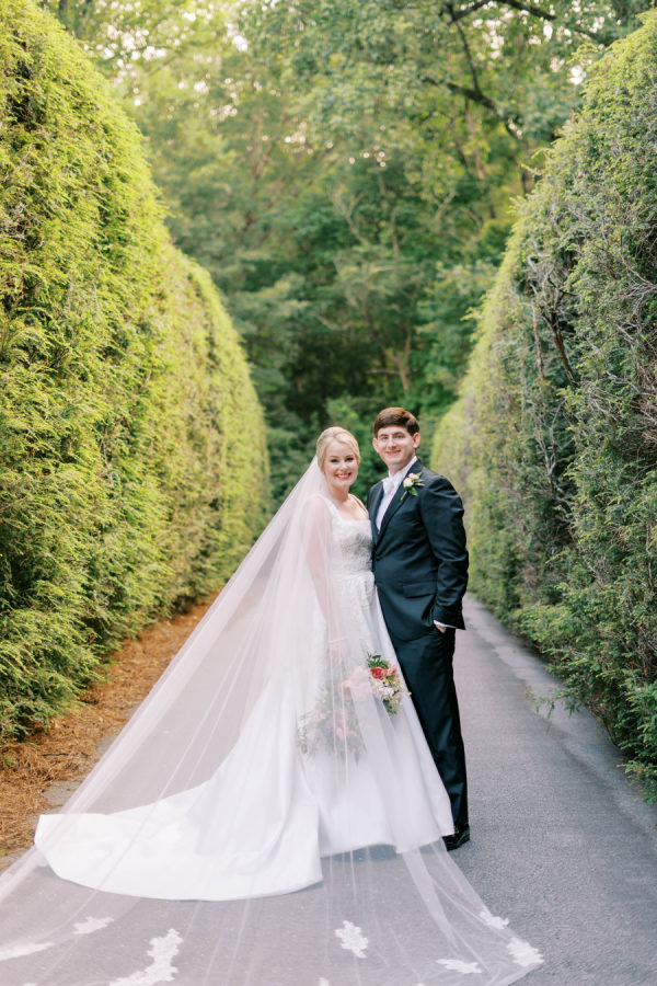 The bride wore a custom “Venturi” gown by Anne Barge, sourced from the Anne Barge Bridal Atelier in Atlanta.