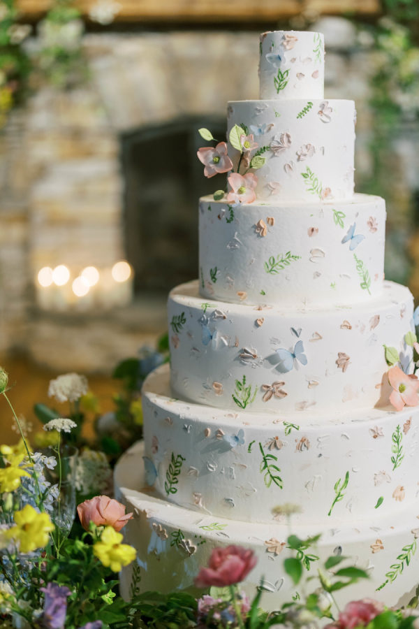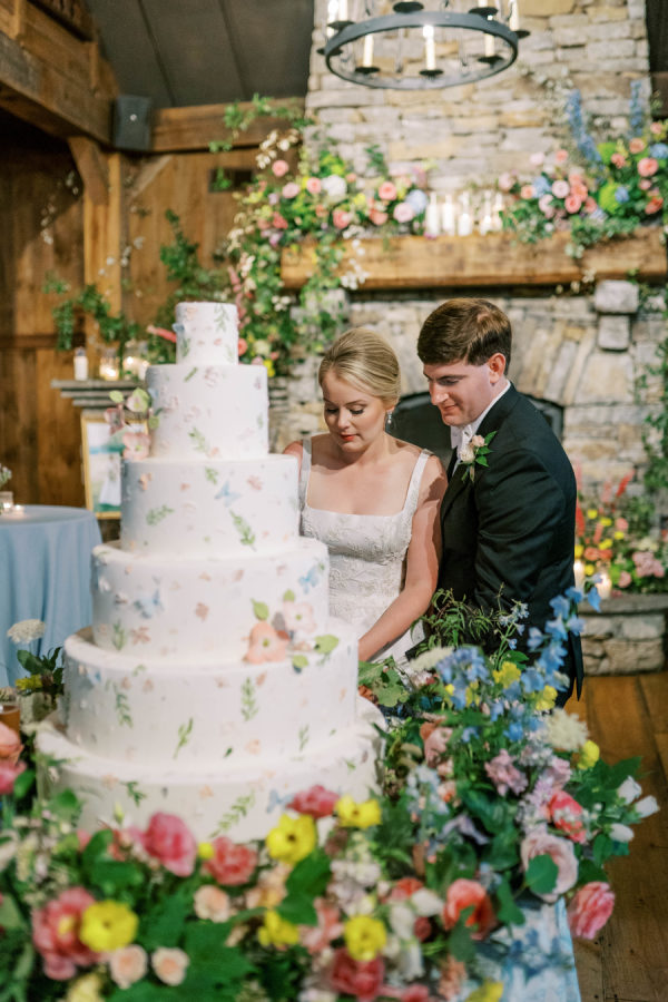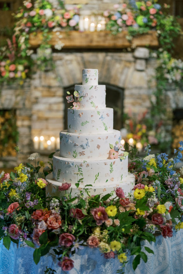 [field title=”Wedding Cake”]The cake featured blue butterflies as a nod to the couple’s sentimental tie to butterflies. It also featured pink dogwood blooms, a sweet tribute to the bride’s Knoxville roots. [/field]