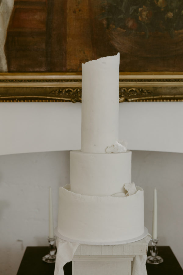 [field title=”Wedding Cake”] The wedding cake was designed to resemble a porcelain sculpture, crafted with silky white chocolate ganache and filled with passion fruit and raspberry sponge. Lori included some of her own handcrafted made by Lori Irish porcelain to complete the aesthetic of the cake.[/field]